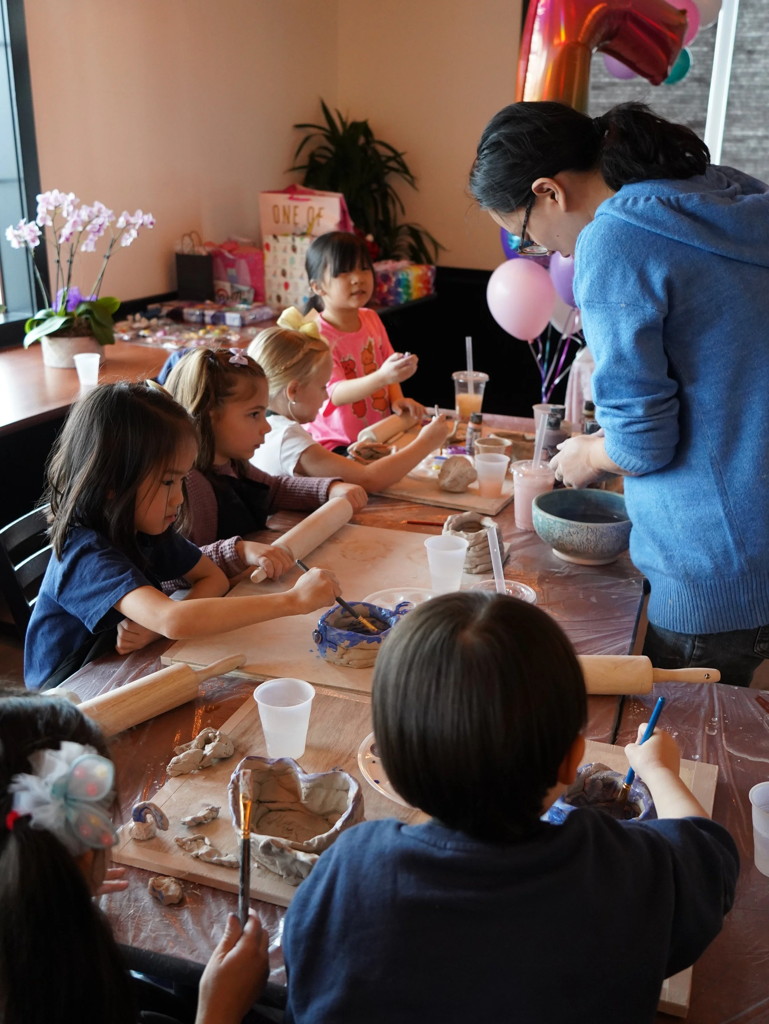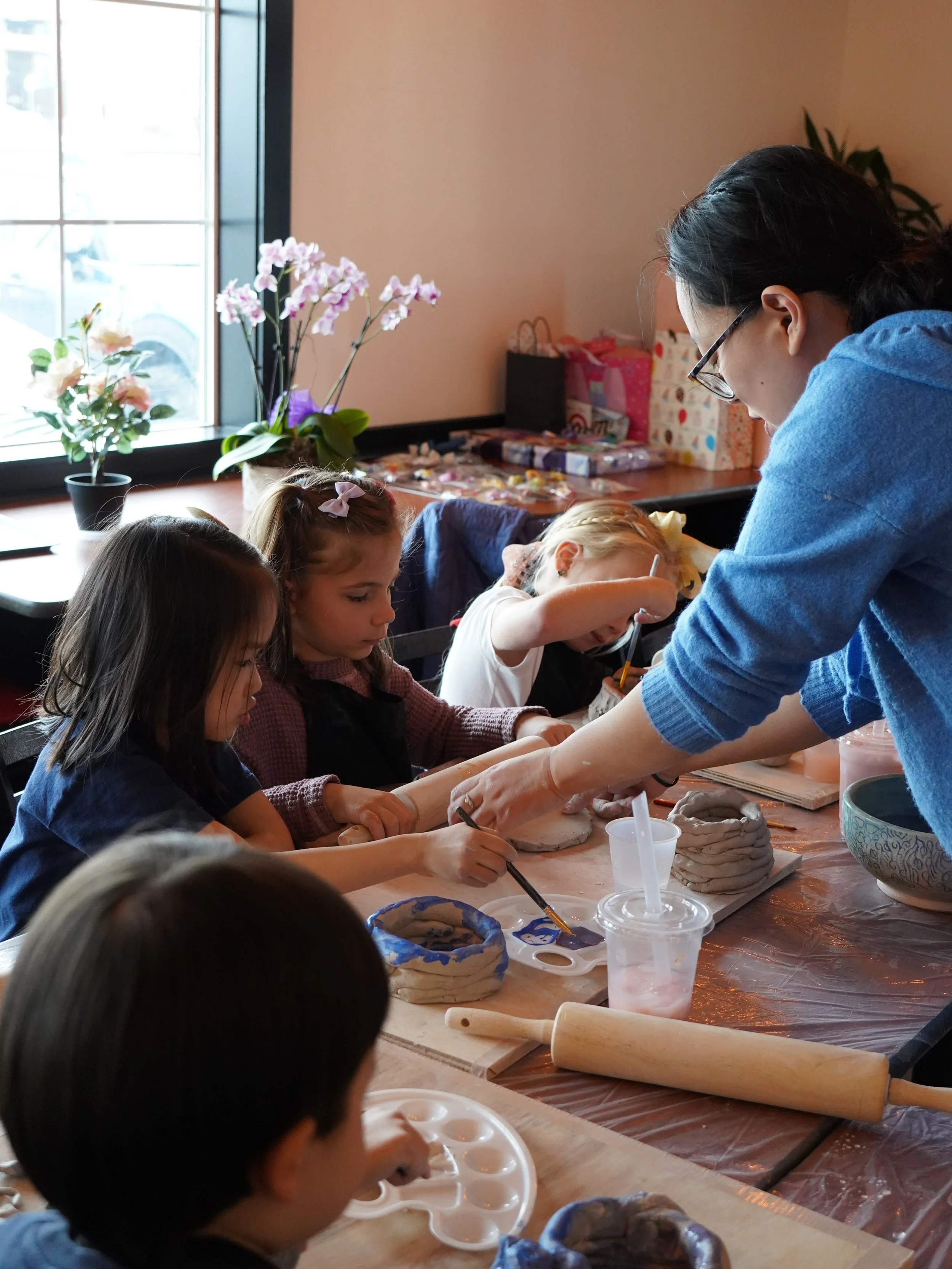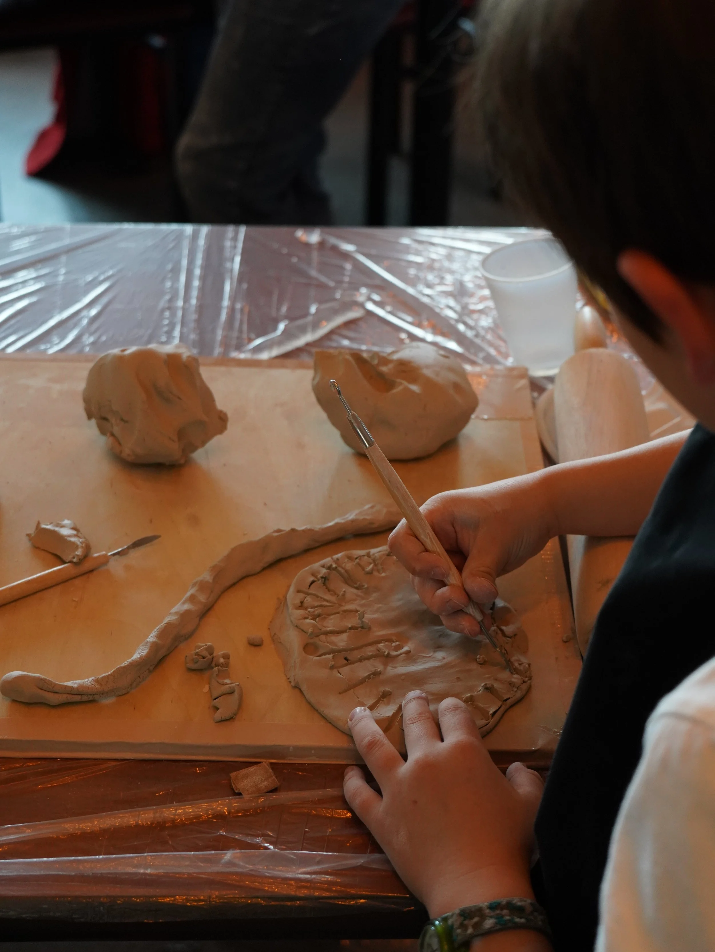 Learning pottery techniques with friends (painting, carving, sculpture)