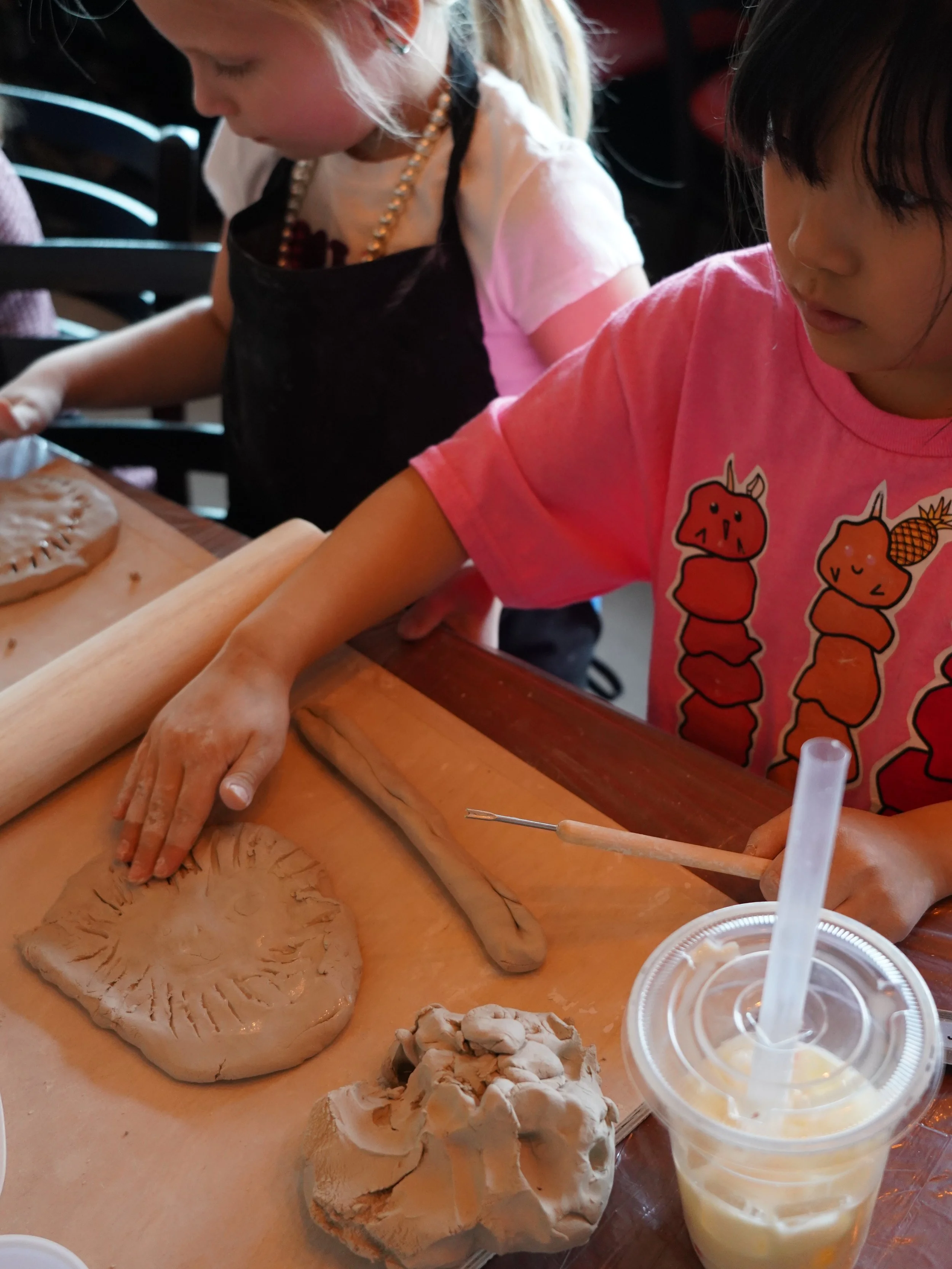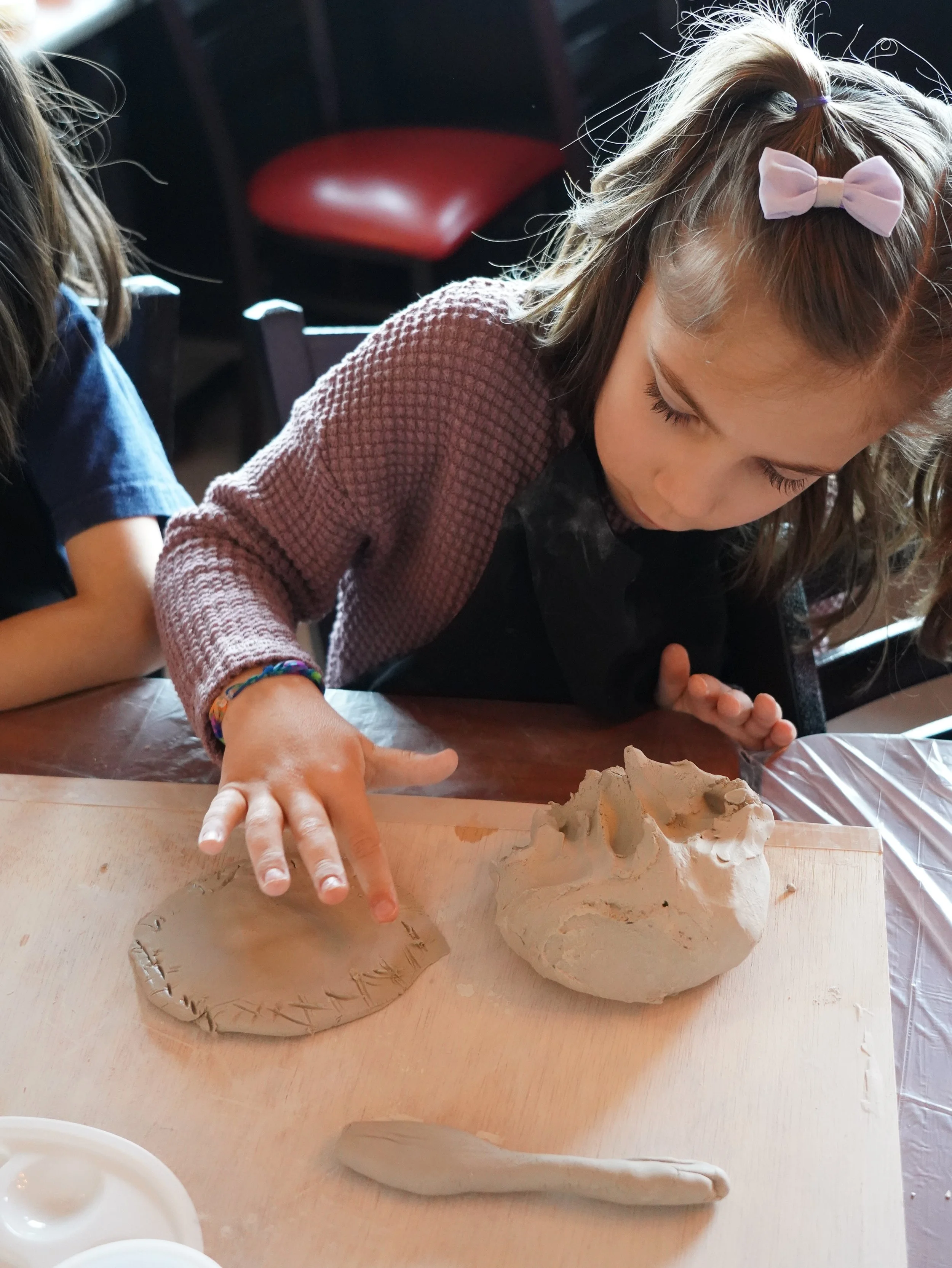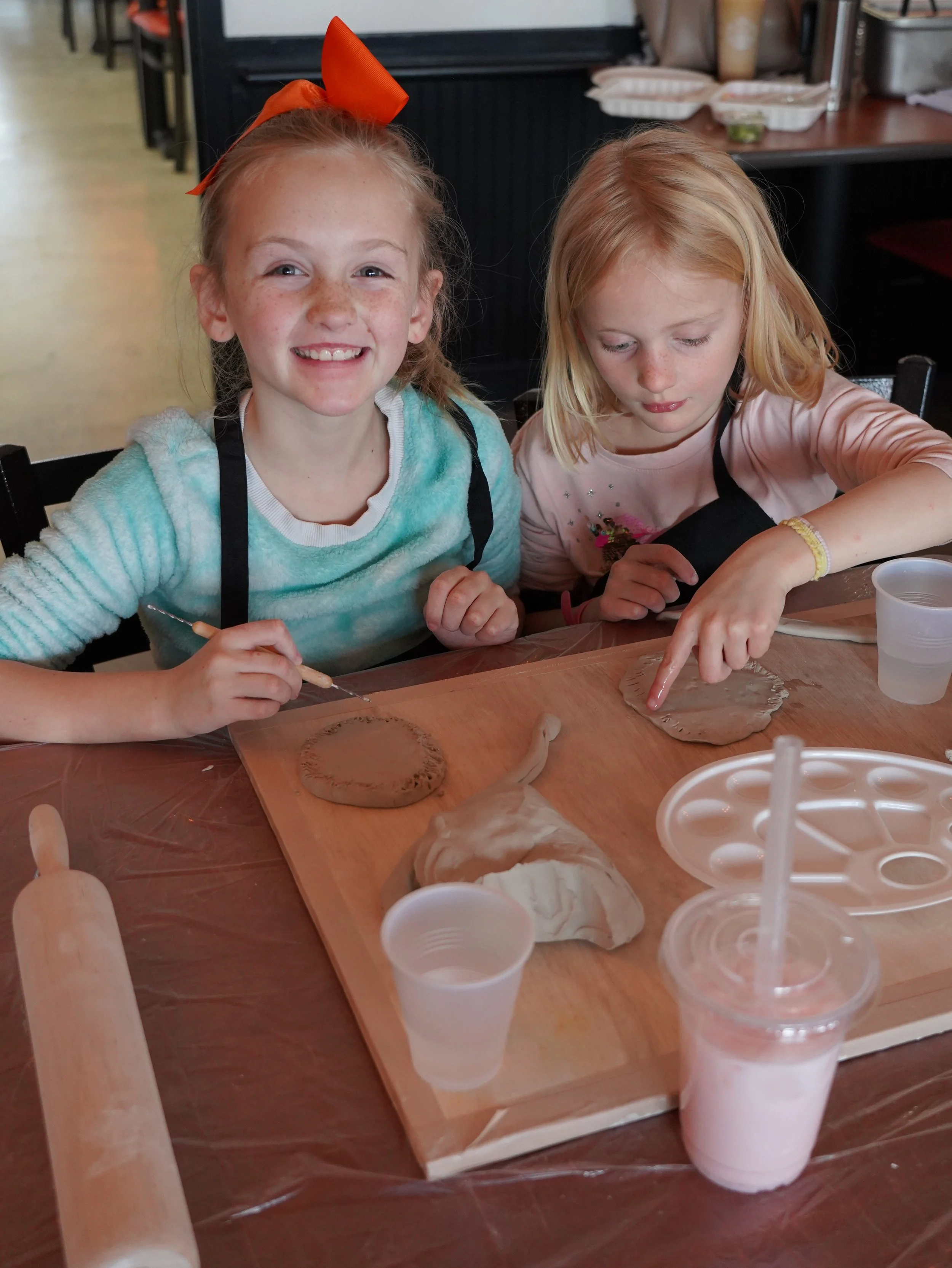 We have all the materials, clay, and tools you need. We make it easy to have fun with friends while exploring art! While all of our clay washes out, we recommend showing up in clothes that can be dirtied.