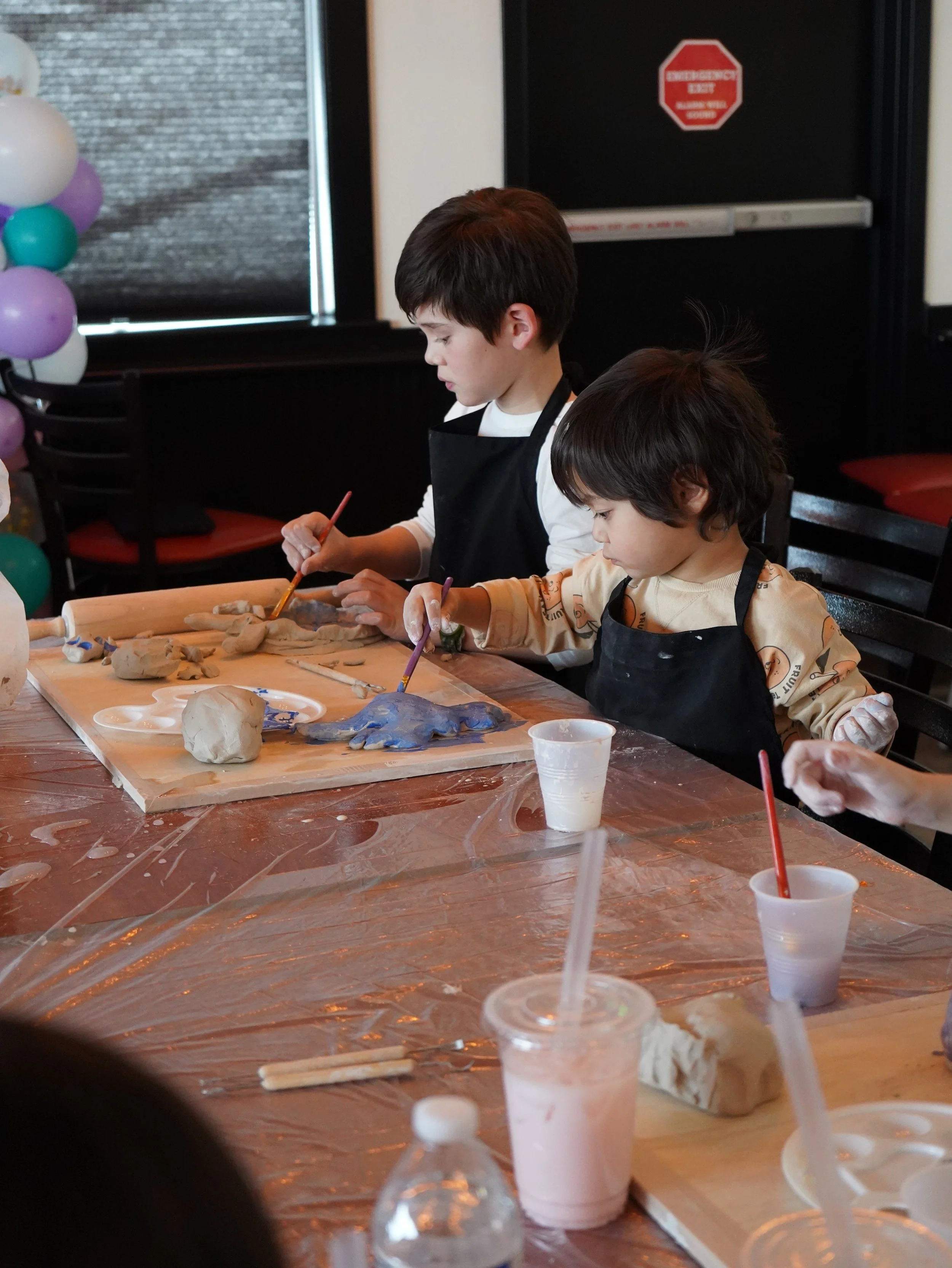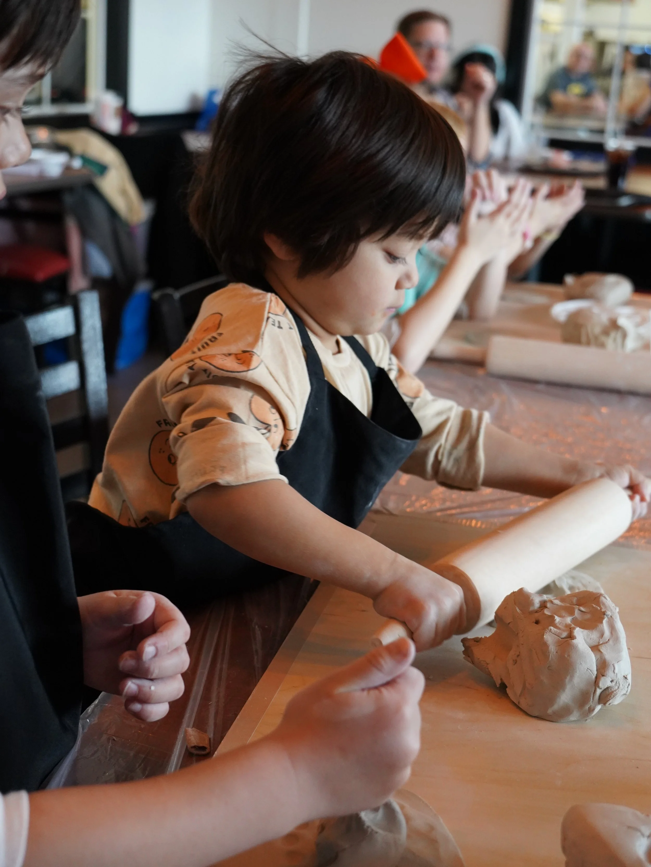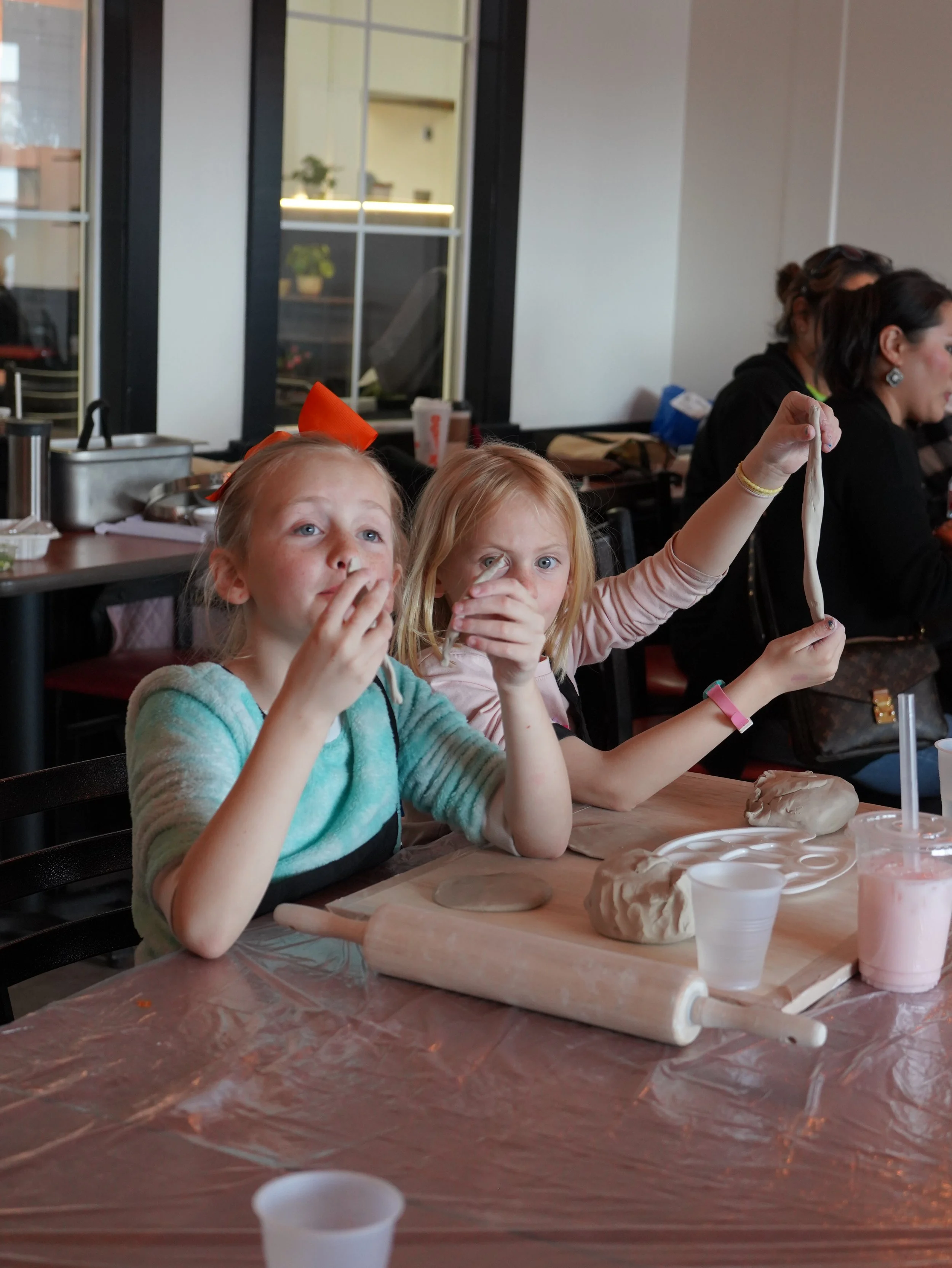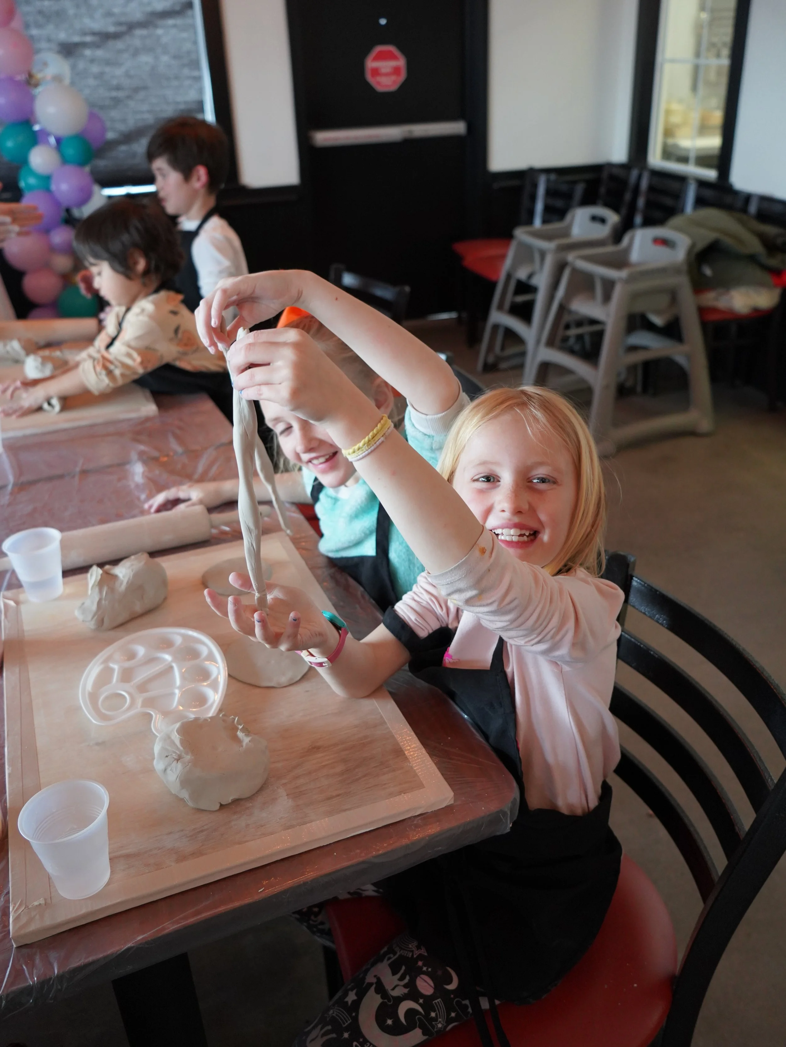 We have all the materials, clay, and tools you need. We make it easy to have fun with friends while exploring art! While all of our clay washes out, we recommend showing up in clothes that can be dirtied.
